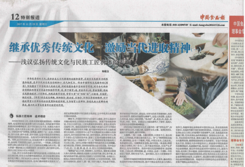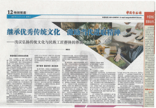 著名国学研究专家,国学培训导师,灵雨国学汇馆馆长灵雨老师论文——浅谈弘扬传统文化与民族工匠群体之养成,被中国食品报连载!